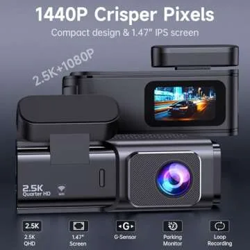 Dash Cam Front and Rear: 2.5K+1080P Dual Dash Camera for Cars, Ecomoment Car Camer with 1.47" IPS Screen, Built-in Wi-Fi, 170° Wide Angle, Night Vision, G-Sensor, 24H Parking Mode, Included 32GB Card