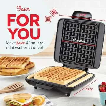 DASH No-Drip Waffle Maker - Four Waffle Molds, Nonstick Waffle Iron with Quick Heat-Up, Nonstick Surface - Perfect Waffle Maker for Kids and Families, Just Add Batter