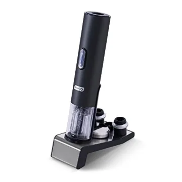 - CHARGING BASE INCLUDED: The elegant charging base provided ensures your wine opener is always ready for action, eliminating battery replacements and maximizing convenience.