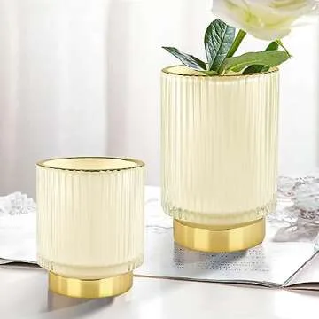 Show moreThe DASITON Makeup Brush Holder Organizer is not just a practical solution for your makeup storage needs; it is a stylish addition to any vanity or home décor. Crafted with care, this stunning crystal cosmetic makeup brush holder boasts a unique retro striped design that effortlessly combines vintage charm with luxurious appeal. The metal base is elegantly gold plated on the edge of the bottle mouth tube, providing a glamorous touch that will impress anyone who lays eyes on it.