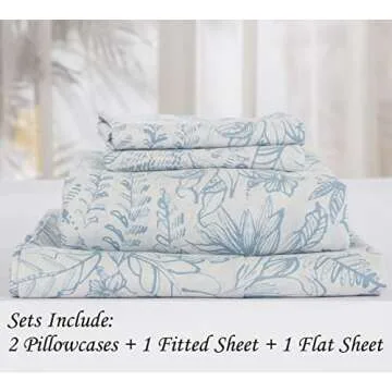 Transform your sleep experience with the DAUAOTO Cotton Sheets Set Queen Size, an exquisite bedding collection designed for comfort and style. This 4-piece set includes one fitted sheet (60"W x 80"L x 14"D), one flat sheet (96"W x 105"L), and two standard pillowcases (20"W x 26"L) featuring a delicate light blue flower vine design over an elegant off-white backdrop. Perfectly curated to enhance any bedroom decor, these sheets blend seamlessly with vibrant bedding accessories, allowing you...