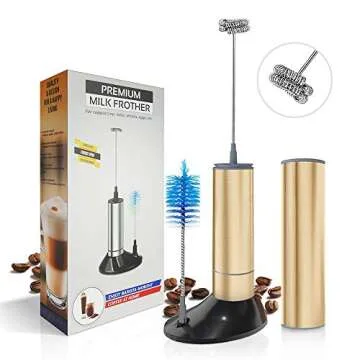 Daugee Gold Electric Milk Frother - Handheld Foam Maker for Cappuccino & Latte
