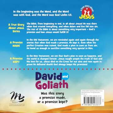 Show moreIntroducing the beautiful retelling of a timeless tale, David and Goliath (True Story About Jesus), crafted by Master Books. This enchanting children’s book elegantly weaves the iconic story of David's bravery and faith with a direct connection to the Gospel, making it not only an engaging read but also a profound tool for teaching young minds about Jesus. With vivid illustrations that bring the story to life, children are invited on a journey that captures their imagination while imparting essential life lessons about courage and faith.