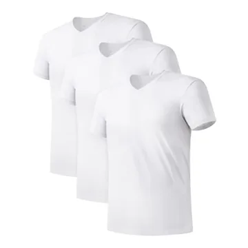 DAVID ARCHY Men's Undershirt Bamboo Rayon Moisture-Wicking White T-Shirts Stretch V-Neck Tees for Men, 3-Pack (L, White)