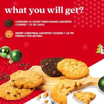 David’s Gourmet and Fresh Baked Merry Christmas Cookies – 1Lb Assorted Holiday Cookies Tin in a Christmas Gift Box - All Natural and Handmade Soft Variety Cookies - Premium Christmas Gift Tin