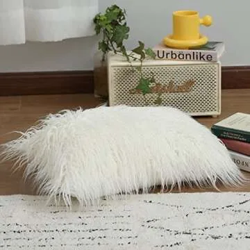 David's Home Faux Fur Lumbar Pillowcase, 1-Packed, Decorative Fluffy Throw Pillow Cover 12 x 20 Inches, Luxury Rectangular Cushion Cover for Bed Couch Sofa Living Room, White