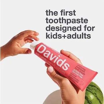 Davids Fluoride Free Kids & Adults Toothpaste, Teeth Whitening, Antiplaque, SLS (Sulfate) Free, Promotes Enamel Health, Mouth & Gum Detox, Natural Strawberry Watermelon, 5.25oz