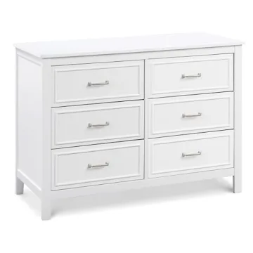 Show moreWelcome the charm and functionality of the DaVinci Charlie 6-Drawer Double Dresser into your home! This stunning white baby dresser strikes the perfect balance between contemporary style and practical usage, making it an essential addition for every nursery. Constructed from solid New Zealand pinewood and TSCA-compliant engineered wood, this dresser guarantees long-lasting sturdiness while adding a touch of grace to your child's room. The elegance of the design is complemented by modern and classic metal pulls, enhancing the visual appeal as well as its functionality. This dresser isn't just beautiful—its practical features make organization effortless.