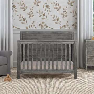 The crib is available in a stylish Cottage Grey finish, making it adaptable to various nursery themes.