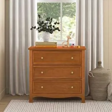 Show moreIntroducing a perfect blend of functionality and style with this exquisite dresser that is designed to grow with your child. This stunning piece not only serves as a storage solution for your baby’s essentials but transforms seamlessly from a changing station to a big kid dresser as your child grows. GREENGUARD GOLD CERTIFIED, it has undergone rigorous scientific testing for over 10,000 chemical emissions ensuring a safe and healthy environment for your little one. Crafted with durability in mind, it features three spacious drawers capable of holding all your baby's adorable clothes and blankets. The sturdy support bars make it long-lasting, while pre-installed euro glides allow for smooth and effortless opening of the drawers, even when hands are full with baby necessities.