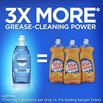 Dawn Ultra contains 3X more grease-cleaning power per drop than leading competitors, ensuring effective cleaning with less product.