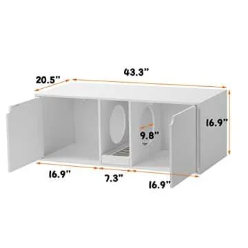 Crafted from heavy-duty wood and finished with an environmentally friendly, odorless coating, this enclosure promises durability and stability. Its generous dimensions of **43.3" x 20.5" x 16.9"** provide ample room for most cat litter boxes and support cats weighing up to **60 lbs**, making it an ideal option for any cat enthusiast.