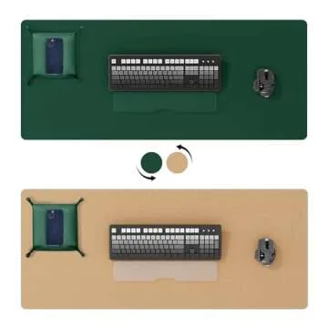 Show more Unleash your workspace potential with the DAWNTREES Dual Sided Desk Mat. This elegantly designed desk accessory merges functionality with aesthetics, featuring a premium dual-side design crafted from eco-friendly cork and luxurious PU leather. This desk mat not only ensures durability but also elevates your workspace by providing a sophisticated charm that seamlessly integrates into both office and home settings. Measuring an expansive 31.5" x 15.8", it is perfectly sized to accommodate your laptop, mouse, keyboard, and even a cup of coffee or tea without compromising space. It's an ideal choice for anyone looking to enhance both functionality and beauty in their workspace.