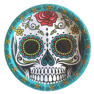 Day of The Dead Dia De Los Muertos Sugar Skull Party Supplies Paper Plate and Napkin Bundle of 3 - Service for 16