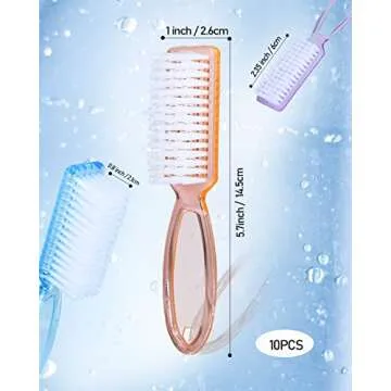 Crafted with an ergonomic long handle, these brushes are comfortable and easy to hold, providing an effortless cleaning experience. Plus, the hanging hole design allows for compact storage, ensuring you can keep them neatly tucked away without taking up precious space in your home or travel gear. Available in a delightful array of five colors – clear, pink, blue, purple, and orange – you can personalize your cleaning routine and easily identify your preferred nail brush.