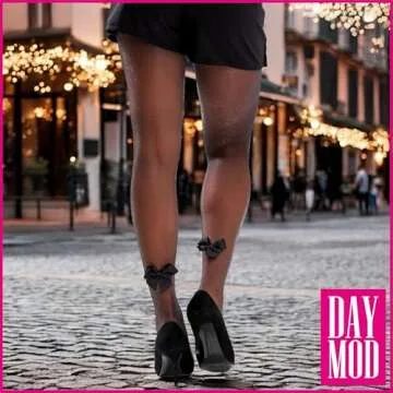 DAYMOD Women's European Fashion Black Stocking - Tights for Women - Seam and Bow Accent - Sheer Black Tights - Made in Europe (Medium, Vintage Black Bow)