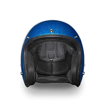 Show moreIntroducing the Daytona Cruiser Helmet, the perfect combination of style and safety for motorcycle enthusiasts. This helmet features a stunning Blue Metal Flake finish that not only looks great but also provides durability you can trust. Designed with a lightweight 3/4 shell, this helmet weighs in at just 2.30 pounds, ensuring comfort throughout your rides. The removable gloss black bubble visor allows for a customizable look and added functionality to shield your eyes from the sun and debris. Approved by the DOT, this helmet meets stringent safety standards without sacrificing style, making it an essential accessory for riders who value both performance and aesthetics.