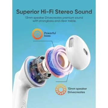 DazDalee Wireless Earbuds Bluetooth V5.3 Headphones 50H Playback Deep Bass Stereo Ear Buds with LED Power Display Charging Case IPX7 Waterproof Earphones with Mic Headset for Android/iOS Phones