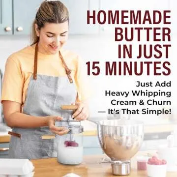 Show more Indulge in the nostalgic joy of making your own homemade butter with the Rustic Butter Churner Set. This innovative butter churner allows you to transform simple heavy whipping cream into delicious, creamy butter in just minutes. Imagine the delightful taste of freshly churned butter, enriched with your choice of herbs, spices, or even a hint of sweet cinnamon. The kit includes a robust hand crank mason jar churner and exquisite Beech Wood Butter Paddles, ensuring a complete and enjoyable butter-making experience.