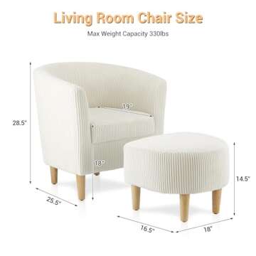 DAZONE Accent Chair with Ottoman - Ivory Corduroy Barrel Chair for Comfort