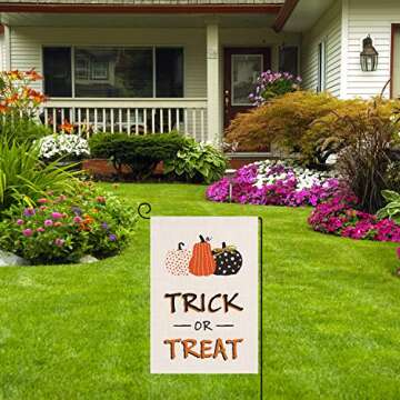 DAZONGE Halloween Garden Flag | Trick or Treat Farmhouse Flag | Double-Sided Fall Decor 12.5''x18''