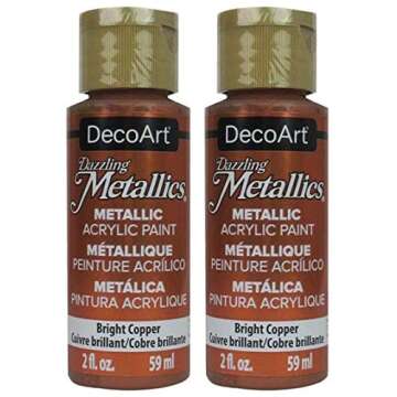 Show moreIntroducing an exceptional addition to your crafting arsenal, the Dazzling Metallics Acrylic Paint! This innovative paint, crafted with precision from finely ground metal flakes, promises to bring your artistic visions to life with a brilliance that is second to none. Imagine transforming ordinary items into stunning masterpieces with just a few strokes of your brush. Whether you're working on a project for your home or seeking to create a personalized gift, this paint is designed to meet your needs. Dazzling Metallics is renowned for being the brightest and best covering paint available, ensuring that every accent you apply shines with the utmost luster.