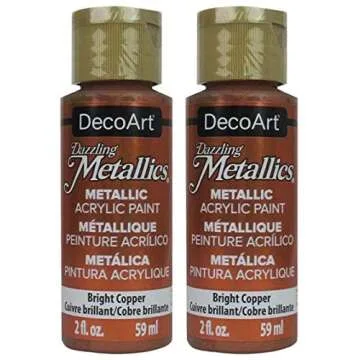 Show moreIntroducing the Dazzling Metallics Acrylic Paint in a stunning Bright Copper hue, your new go-to choice for elevating crafts and artistic creations. This exceptional paint, with its unique formulation of finely ground metal flakes, ensures your projects radiate brilliance and elegance. Whether you’re looking to embellish home décor items or create one-of-a-kind gifts, this paint is specifically crafted to inspire limitless creativity. Renowned for being the brightest and best covering paint available, Dazzling Metallics guarantees every stroke will deliver striking results that catch the eye and leave a lasting impression.