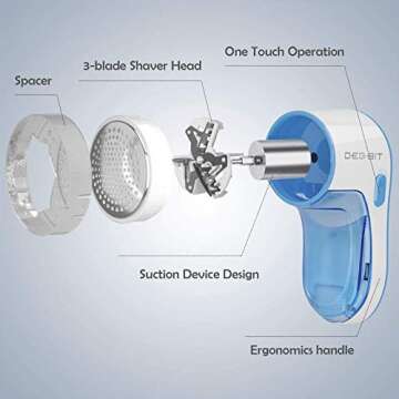 DB DEGBIT Upgrade Rechargeable Lint Remover & Fabric Shaver, 3-Leaf Stainless Steel Blades Effective Lint Shaver, Portable Pill Fuzz Remover for Fabric, Clothes, Furniture, Pet Hair, Blanket