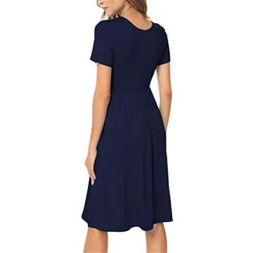 DB MOON Women's 2024 Summer Casual Short Sleeve Dresses with Pockets - Navy Blue, M