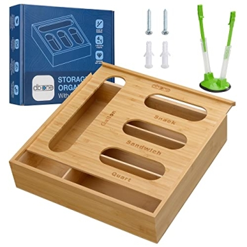 Show more If you’re looking to elevate your kitchen organization while adding a touch of modern elegance, the db-one Food Bag Storage Organizer is your perfect solution. This exquisitely crafted **Bamboo Plastic Bag Organizer** is not only functional but also aesthetically pleasing, making it a must-have for any household. With its capability to store various bag sizes—gallon, sandwich, quart, and snack bags—this organizer features a neat compartmentalized structure with engraved labels, ensuring you find the right bag in a heartbeat. Made from high-quality, durable bamboo, this organizer stands up to the rigors of even the busiest kitchen environments.