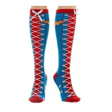 DC Comics Wonder Woman Faux Lace Up Juniors Knee High Socks