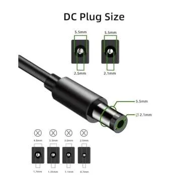 Designed for convenience, this adapter is equipped with a standard US plug that easily connects to any standard outlet. The output features a 5.5x2.1mm DC Power Plug, ensuring compatibility with a wide range of devices. Measuring just 7.5x2.5cm, its compact size means it won't take up much space, making it ideal for home use or for carrying on the go.