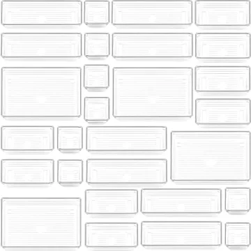 Show more Meet the DCA 28 PCS Clear Plastic Drawer Organizer Set, your ultimate solution for transforming chaotic drawers into beautifully organized spaces. This versatile set features a comprehensive assortment of 28 drawer organizers available in 4 different sizes, allowing you to tailor the tray setup to meet your specific storage needs. Ranging from 9 x 3 x 2 inches to 3 x 3 x 2 inches, these organizers are perfect for decluttering any area of your home or office. Bid farewell to clutter and embrace neatness with this stylish and functional storage solution.