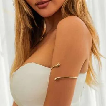 The stylish gold finish not only amplifies your overall look but also complements any outfit, making it a delightful accessory year-round. Forget about discomfort; this upper arm cuff is designed for long-term wear, allowing you to dance the night away without worrying about sliding or pinching.