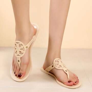 Show moreIntroducing the DDXYYDS Sandals Women Dressy Summer Flat - the perfect embodiment of style and comfort for your summer wardrobe! These stunning flip flops are not only designed with a unique and fashionable appearance but also prioritize your foot health. Every step feels effortlessly elegant with these open toe thong sandals, crafted from quality PVC materials that guarantee durability. Pair them with your favorite summer outfits, whether it's a casual day out or a chic sunny gathering, and watch them become your go-to summer essential.