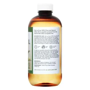 De La Cruz Pure Olive Oil - Natural Expeller Pressed Olive Oil for Hair and Skin - Lightweight Body Oil for Dry Skin 8 Fl Oz
