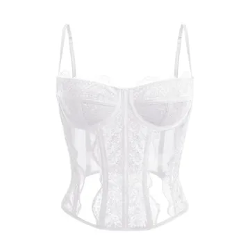 Dealmore Corset Tops for Women - Lace Mesh Spaghetti Strap Top for Date Night and Party Outfits