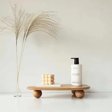 Versatile and chic, the DEAMACE Wood Riser is perfect for showcasing a range of items from small plants and vases to photo frames and candles. It effectively elevates the appeal of your decor pieces, whether displayed on a console table, bathroom countertop, or kitchen shelf. Its modern, minimalist design, complemented by playful spherical stands, seamlessly fits into various home styles, making it both a decorative and functional addition.