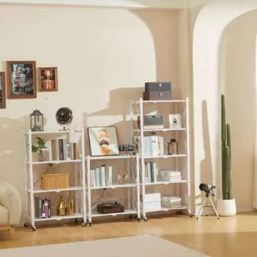 Show more Introducing the remarkable Pre-Assembled Rolling Shelving Unit, an innovative storage solution that turns clutter into order in seconds. This sleek, modern shelving unit is designed to cater to your every storage need, featuring a foldable design that allows for effortless portability and space-saving characteristics. With an astonishing load capacity of 550 pounds without wheels and optimal support with a maximum of 225 pounds with wheels, this unit ensures stability and durability, making it perfect for a variety of uses.