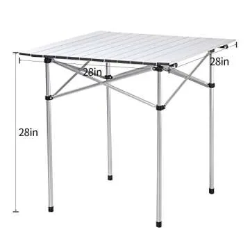 Deanurs Folding Tables Camping Roll Up Aluminum Portable Square Table for Outdoor Hiking Picnic,28" x 28" w/Carry Bag,Silver