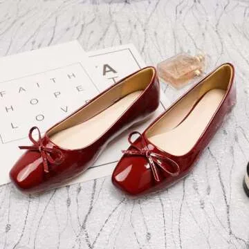 Dear Time Women's Casual Foldable Ballet Flats Square Toe Ballerina Flats Shoes Comfortable Burgundy Patent Leather Size 7