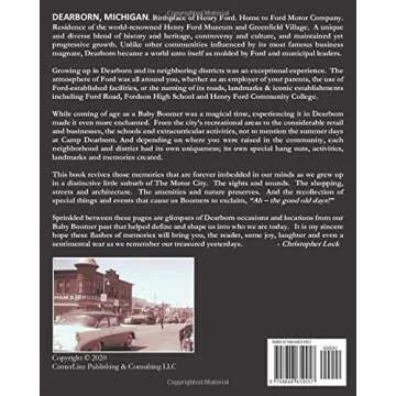 Show moreIf you are looking for a unique gift that resonates with nostalgia, look no further! This extraordinary book captures the essence of growing up in Dearborn, MI, making it a perfect treasure for Baby Boomers and history enthusiasts alike. Now you can explore the vibrant memories of a bygone era through its adorable anecdotes and stunning visuals. Filled with photographs and detailed narratives, the book takes you on a journey back in time, allowing you to relive cherished moments and reconnect with your roots.