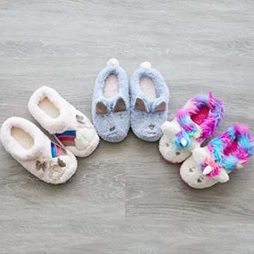 Show more Discover the ultimate in cozy comfort with our delightful range of kids' critter slippers by Dearfoams! Designed to bring a smile to your child's face, these slippers are not only cute but also incredibly functional. Your little ones can leave the drab, boring slippers behind and step into a world of fun with designs featuring a Unicorn, Cat, Dog, Shark, Dinosaur, and more! Each pair promises warmth and joy, allowing children to express their love for animals while enjoying their daily activities.