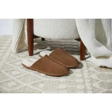 Show moreExperience the ultimate in luxury comfort with our Dearfoams Men's Genuine Suede Bradford Scuff Slippers. These stylish slippers are crafted from premium genuine suede, ensuring that your feet are enveloped in a blanket of warmth and comfort. The soft faux shearling-lined insoles provide an additional layer of plushness that cradles your feet, making them the perfect choice for unwinding after a long day.