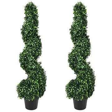 Show moreTransform your living space or garden with the DearHouse 3 Ft Artificial Cypress Spiral Topiary Trees. This 2-pack of pre-potted boxwood topiary trees brings the elegance and beauty of nature into your home without the need for maintenance. Crafted with lifelike green leaves from durable plastic, these trees offer a realistic touch and appearance. The unique spiral design adds an artful appeal, making them a perfect decorative piece for any setting. Whether placed indoors in your living room or outdoors flanking your front door, these topiary trees will draw attention and enhance the aesthetic of your space.