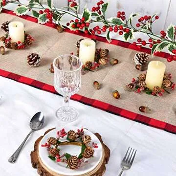 DearHouse 6pcs Christmas Candle Holders with Berry Pinecone Candle Ring, Decorative Glass Tealight Candle Holder for Home, Wedding, Living Room and Bedroom Decor