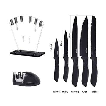 Dearithe Kitchen Knife Set: 7-Piece High Carbon Stainless Steel Set with Sharpener & Acrylic Stand