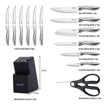 dearithe Knife Sets for Kitchen with Block, 14 Piece High Carbon Stainless Steel Knife Block Set with Built-in Sharpener, Professional Kitchen Knife Set, Hammered Pattern Hollowed Handle Design