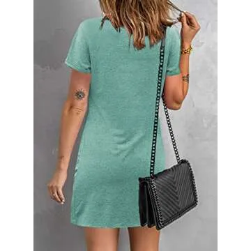 Show moreTransform your summer wardrobe with the Dearlovers Women’s V-Neck Short Sleeve Solid T-Shirt Dress, designed to combine comfort with effortless style. Crafted from a soft, breathable fabric, this casual dress boasts a relaxed fit that makes it perfect for those sunny days when all you want is to feel fresh and comfortable. With its unique twisted hem and stylish shoulder cutouts, this mini dress isn't just functional; it’s a fashion statement you can wear anywhere, from a casual outing to relaxing at home on a laid-back weekend.