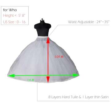 Dearta Women's 8 Layers Tulle Ball Gowns Dresses Petticoats with No Rings White